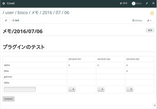 サマリ Crowiでオレオレjavascriptを実行できるようにした。 github.com 背景 CrowiはMarkdownでかけるwikiで、見た目もおしゃれで大変いい感じなんだけど、 pluginが使えないのがちょっと残念だったので作った。 予防線 自分のJavascript的知能指数は2くら…